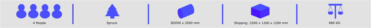 | Assembled Size (mm) | Ø 2040 x 2000 | Ø 2050 x 2200 | Ø 2050 x 2500 | Ø 2050 x 2800 | Ø 2050 x 3300 | Ø 2050 x 4000 | Ø 4050 x 1970 |