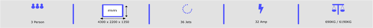 The Ares swim spa is designed for 3 persons, comprising spa and swim functionality. The Spa end of the Ares has 2 loungers and 1 seated position