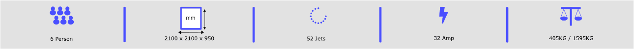 Five seats and one lounger ensures the Eclipse hut tub is ideal for a family. With Three types of jet installed the Eclipse tub gives a broad massage across your muscle groups, while directional jets pinpoint areas that need that deeper massage. A series of static jet pinpoint certain areas of the body where required.