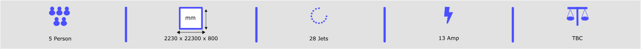 The Vienna hot tub can accommodate five people so is suitable for a family.  It comprises of four seats and one lounger.  Sound is provided via Bluetooth so allowing the currently available phone and tablets to be the source of your music. This tub requires a 13 Amp supply, making it a plug and play installation.